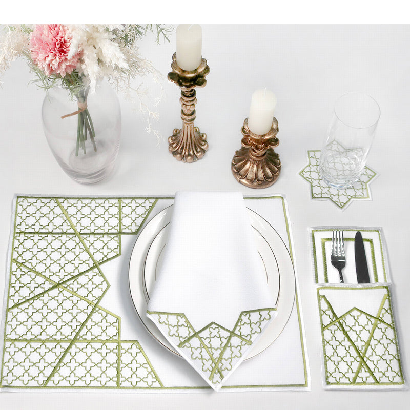 4 Place Mats4 Napkins I 4 Cutlery bag I 4 Cocktail coaster