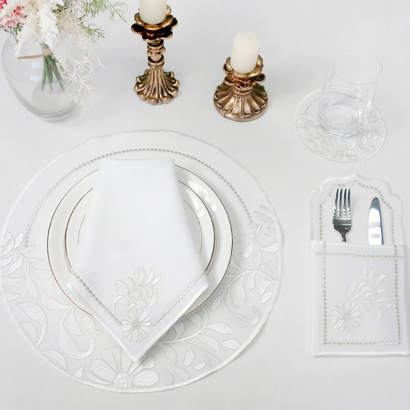4 Embroidered Table Mat I 4 Matching Napkins I 4 fork bag I 4 coaster